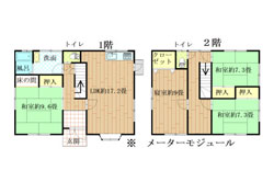 | 建物面積 | 1F:69.00㎡ 2F:63.00㎡ その他: | 延床面積 | 132.00㎡ 39.93坪 |